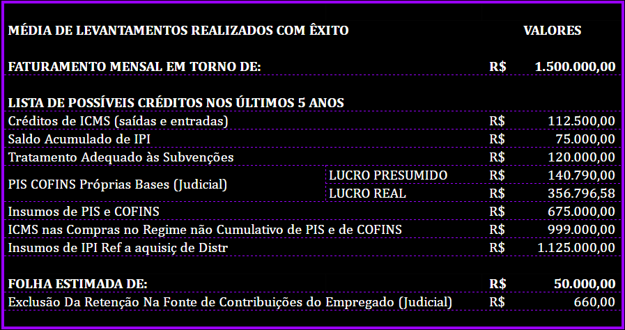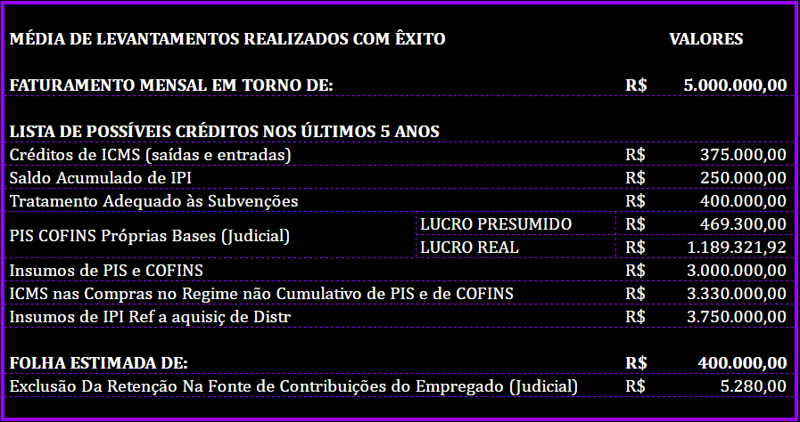 • Recuperaram milhões em créditos tributários para seus clientes;